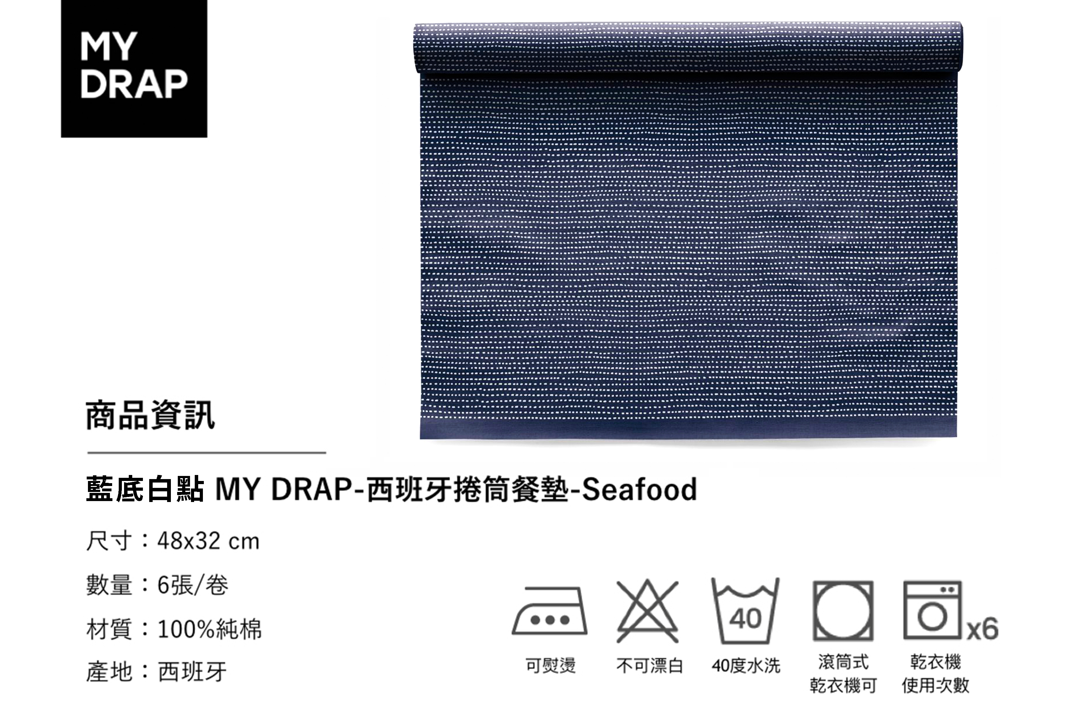 餐墊 藍底白點
